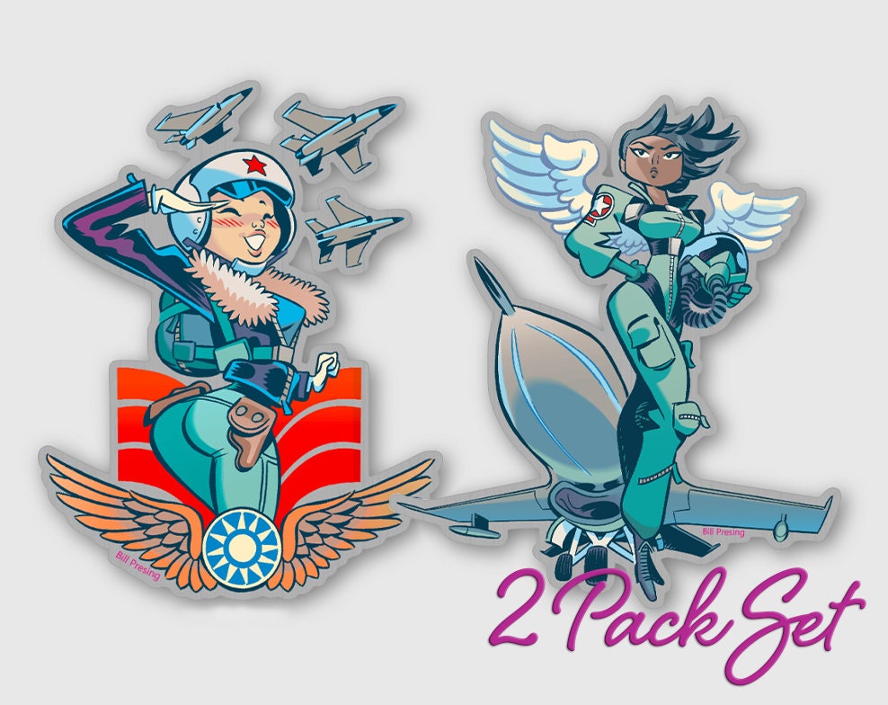 Source : www.hottopic.comWorking Women Set of 2 BIG Brushed Aluminum Stickers aviators